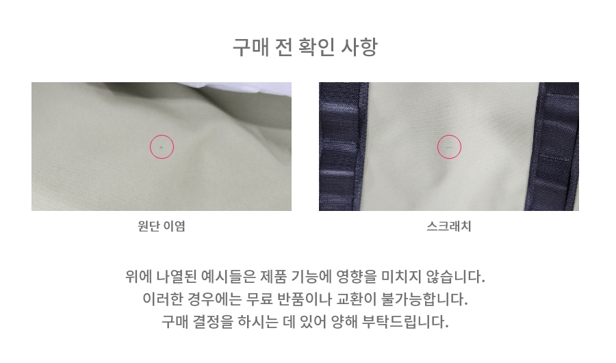 초기 제품 불량 및 하자로 인한 교환 및 환불은 구매 혹은 제품 수령 후 7일 이내에 가능합니다.