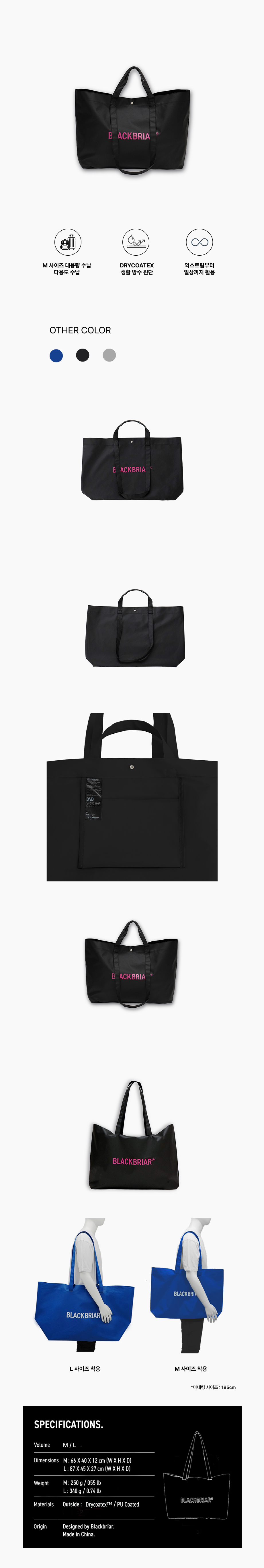 가볍고 실용적인 블랙브라이어 토트백입니다.